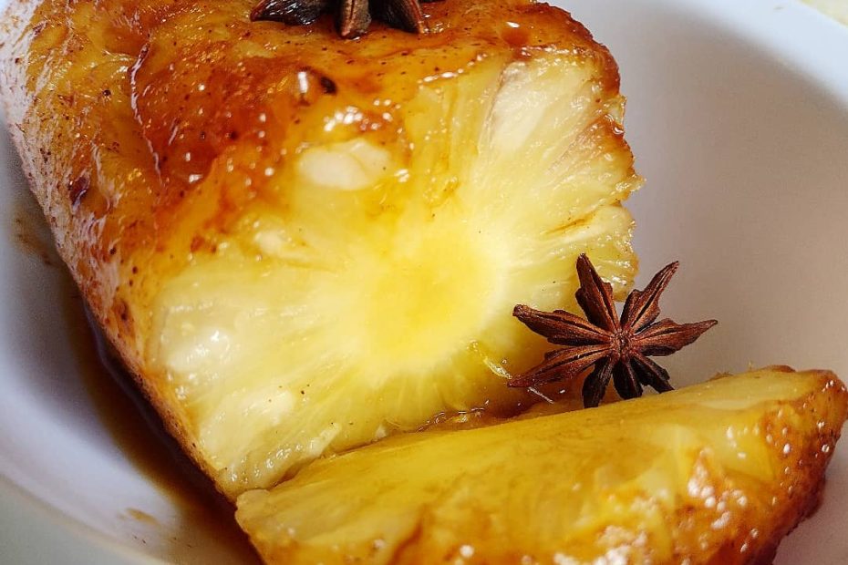 Faço questão de compartilhar essa receita de Abacaxi assado no forno com canela que achei em no diário da minha avó, uma mineira arretada que cozinhava demais, tudo que ela fazia era maravilhoso, saboroso, de encher a boca de saliva, nunca provei nada dela que não fosse extremamente delicioso. Faço questão de compartilhar essa receita fácil com vocês para que ela seja sempre lembrada.