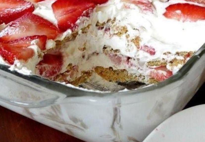 Para uma textura mais suave, mergulhe os biscoitos rapidamente em leite ou suco de morango antes de colocá-los na forma.