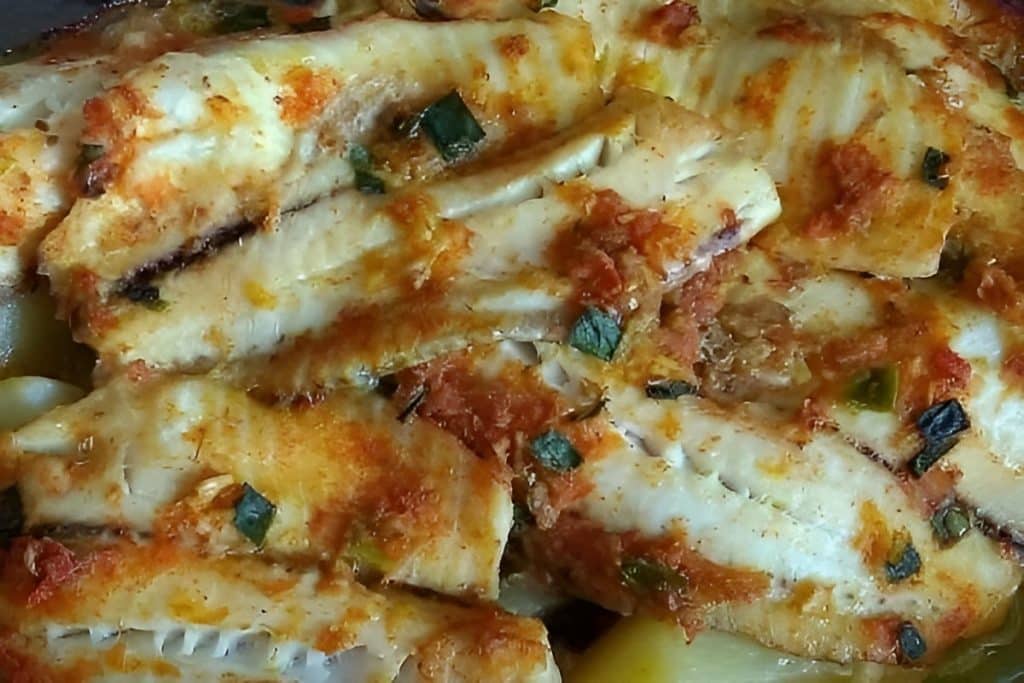 - Montagem: Em um refratário, espalhe um pouco do molho branco. Disponha uma camada de batatas cozidas, seguida de uma camada de filé de tilápia. Cubra com mais molho, batatas e o restante do peixe. Despeje o molho restante por cima e finalize com queijo mussarela.