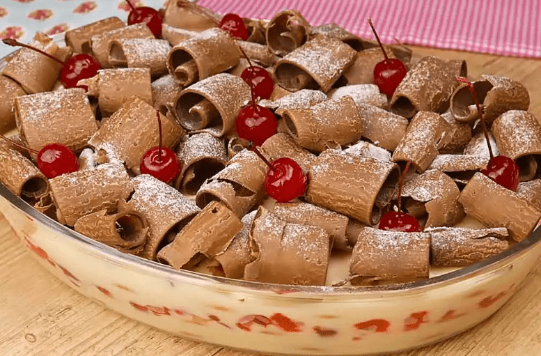 - Adicione mais cerejas marraschino e polvilhe açúcar de confeiteiro por cima para um toque final irresistível.
