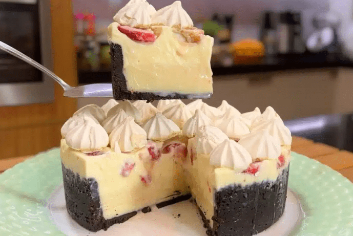 - Desenforme, retire o aro, saboreie e sirva essa delícia de sobremesa cremosa que é fantástica!