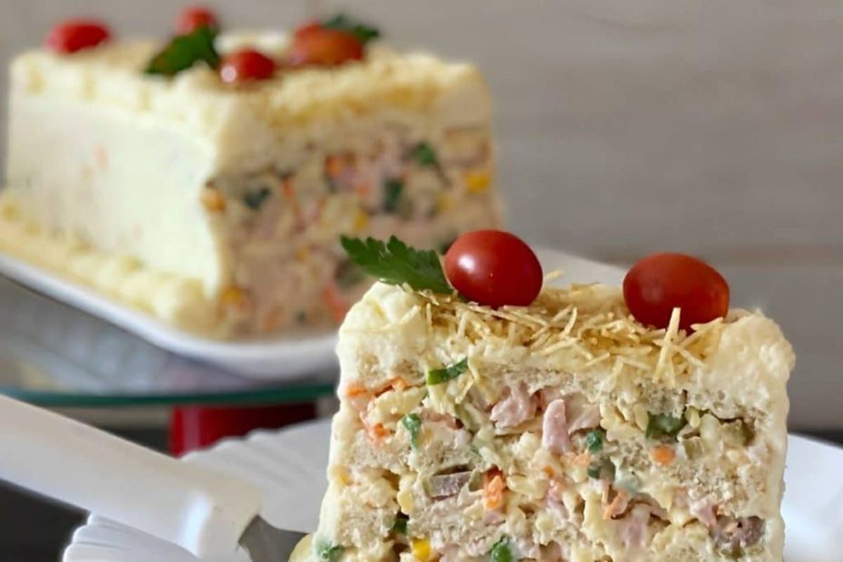 - Faça mais uma camada de pão, coloque o restante do recheio e feche com mais uma camada de pão.